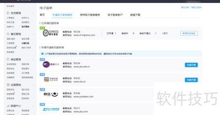 1、 登录拼多多商家后台,进入电子面单功能,开通后选择合作快递并添加,部分快递支持先使用后购买,提交申请后等待快递公司审核通过即可。
