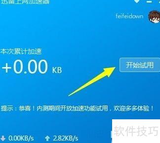 3、 打开迅雷加速工具,等待登录成功后,点击主界面的开始试用按钮,即可使用该工具提升宽带上网速度。