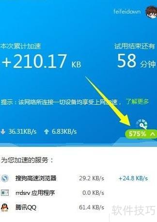 4、 程序将自动启动加速,并实时显示累计加速的流量,具体所示。