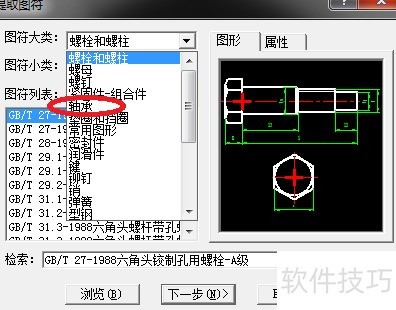 2、 例如,调用轴承图块时,点击选择轴承即可。