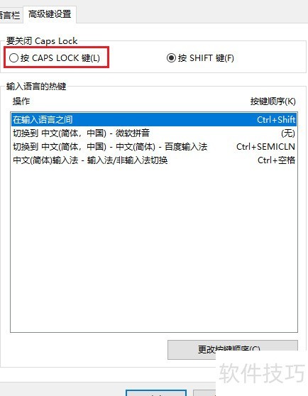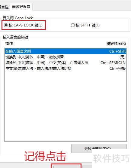 7、 选择通过按下Caps Lock键来操作。