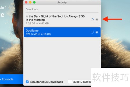 7、 点击暂停按钮可停止当前下载,若要暂停全部下载,请点击窗口底部的暂停下载按钮。