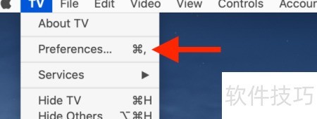 13、 点击菜单栏的电视选项,再选择首选项,或直接按下Command +; 快捷键,即可迅速打开应用的设置界面。