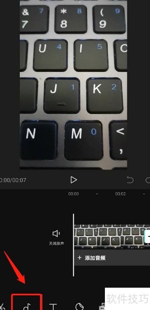 3、 进入视频编辑后,点击音频选项。
