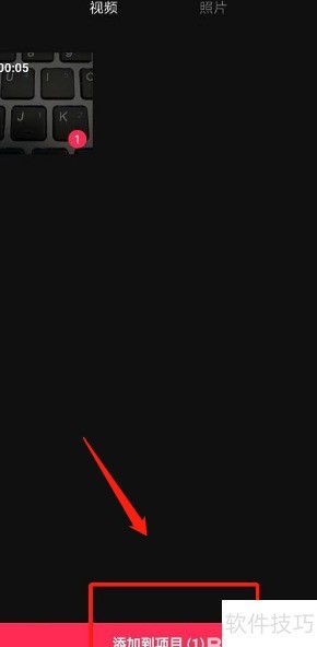 2、 导入视频后,选取所需片段并添加至项目以提取音乐。