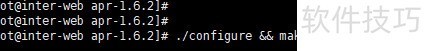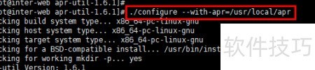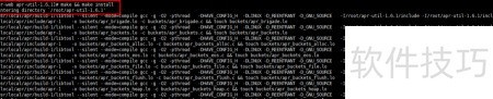 8、 使用./configure --with-apr=/usr/local/apr命令对apr-util进行配置,其中--with-apr参数指定的路径为先前安装的apr所在目录。配置成功后,执行make && make install命令开始编译并安装apr-util组件。整个过程无需额外干预,系统将自动完成源码编译和文件复制。当终端中出现/usr/bin/install -c -m 755 apu-config.out /usr/local/apr/bin/apu-1-config的输出信息时,表明安装流程已顺利完成。该提示意味着相关可执行文件已被正确复制到目标路径,apr-util的功能模块已部署到位,可以供后续软件调用使用。整个安装过程依赖于前一步骤中apr的正确安装,路径设置需保持一致,否则可能导致配置失败。具体界面效果可参考相应操作示意图。