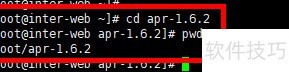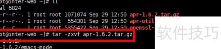 4、 执行命令tar -zxvf apr-1.6.2.tar.gz对安装包进行解压,完成后进入解压目录,使用命令cd apr-1.6.2切换至该文件夹。操作效果所示。