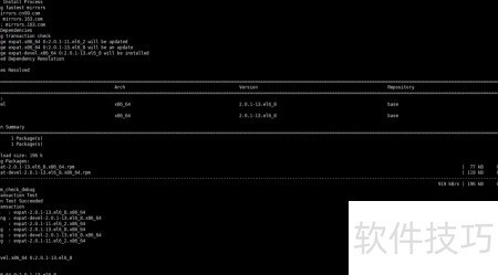6、 通过yum工具安装apr-util所需的expat依赖,执行命令yum install expat expat-devel -y即可,具体操作所示。