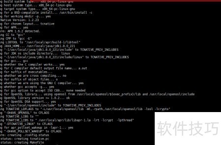 16、 进入native目录,可通过执行cd native/命令实现。随后,在该目录下运行配置指令:./configure --with-apr=/usr/local/apr --with-java-home=/usr/local/java/jdk1.8.0_221 --with-ssl=/usr/local/openssl,以完成native组件的配置。其中,--with-apr=用于指定APR库的安装路径,需确保路径指向正确的APR根目录;--with-java-home=用于设置Java开发工具包JDK的安装位置,此处应与实际的JDK路径保持一致;--with-ssl=则用于关联OpenSSL库的安装目录,确保SSL相关功能正常启用。以上路径均需根据系统实际安装情况准确填写。配置过程中若无错误提示,则表示参数识别成功,可继续后续编译操作。具体执行效果可参考相应界面示意图。