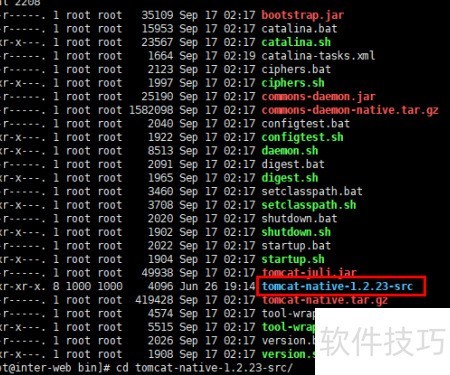 15、 执行tar -zxvf tomcat-native.tar.gz命令解压native文件,随后进入解压后的目录,输入cd tomcat-native-1.2.23-src/即可完成切换,具体操作所示。