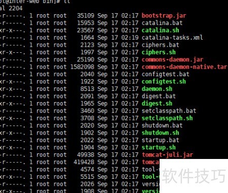 14、 进入Tomcat安装路径下的bin文件夹,例如将Tomcat安装在/usr/local目录中,可通过执行命令cd /usr/local/tomcat/bin/切换至该目录,操作界面所示。此步骤主要用于启动或管理Tomcat服务,是进行后续操作的基础准备。