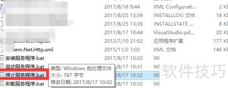 3、 运行测试bat文件后,因电脑未开启相关服务,程序无法执行停止操作,故显示服务未运行状态。