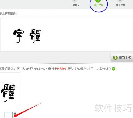 3、 进入后查看找字体步骤,点击浏览并上传图片即可。