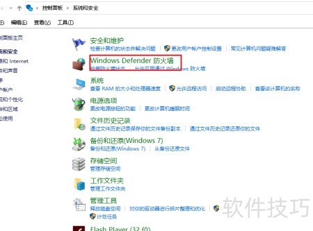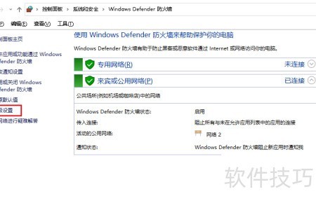 3、 打开设置后,选择Windows Defender防火墙选项进入。
