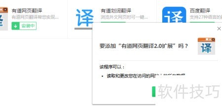 2、 在扩展中心搜索网页翻译,会出现多个插件供选择使用。