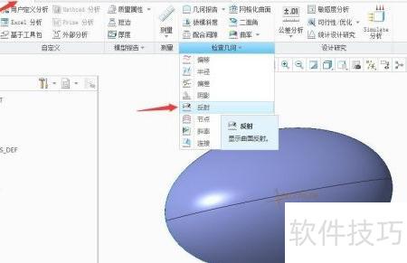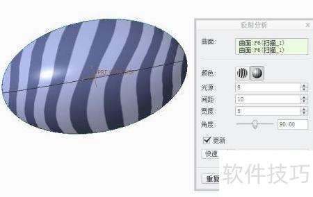 4、 进入分析菜单,选择检查几何中的反射,可发现曲面品质优良。