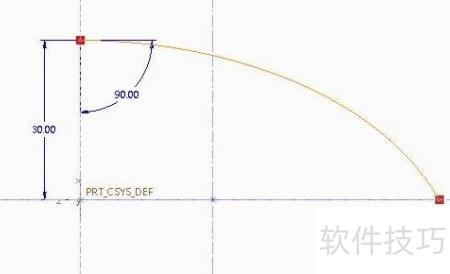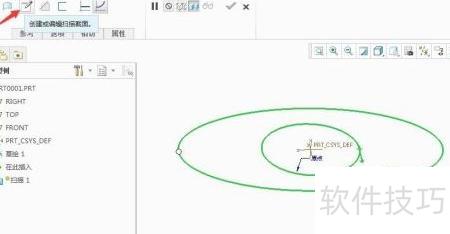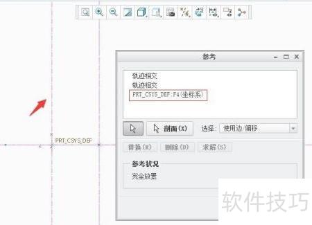 3、 进入编辑或创建扫描截面,选定坐标系为参考,捕捉生成中心线,再绘制样条曲线作为扫描轮廓。
