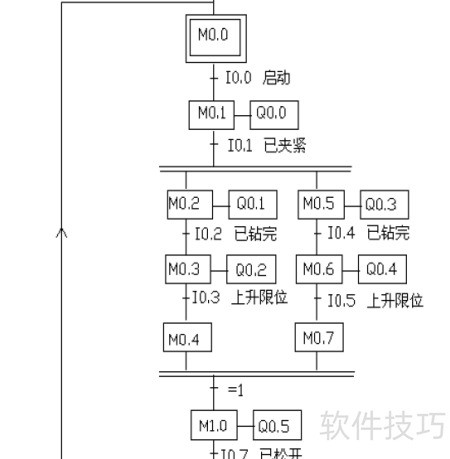 7、 根据要求绘制顺序功能图,参考示例图形。