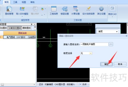 6、 第六步,在完成名称提取后,选择对应楼层,点击楼层选择功能,选定所需楼层,最后确认以完成图纸的定位与分割。