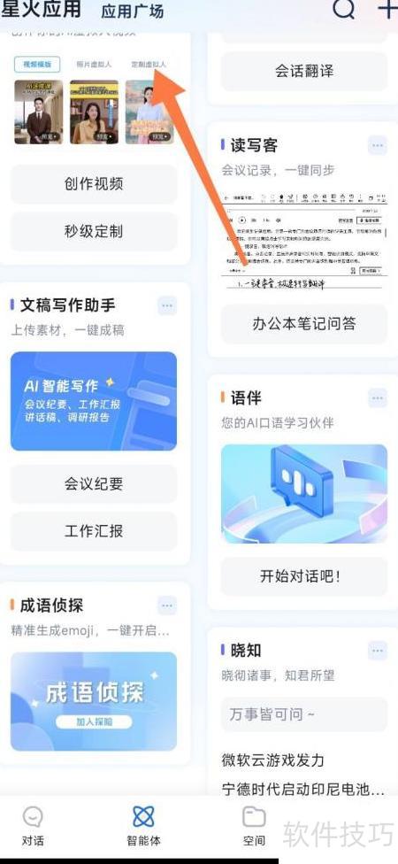 1、 打开讯飞星火,选择智能体功能图标。
