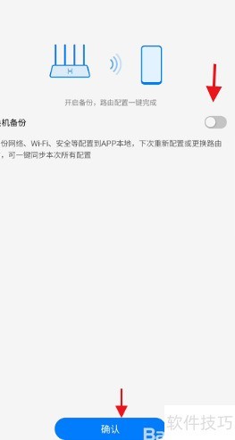 3、 进入换机备份功能,点击右侧按钮并确认下方提示以完成设置。