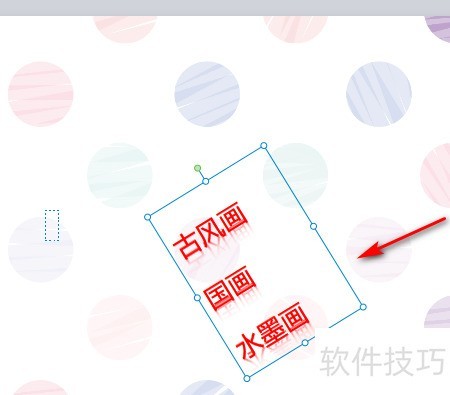 4、 按住鼠标左键拖动即可旋转文本。