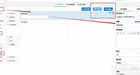 8、 随意选择一个表单进行演示,左侧为可拖拽的字段区域,将其拖至中间编辑区,随后在右侧调整字段属性。设计完成后,点击顶部预览功能,确认无误后保存即可完成表单制作。其余表单操作方式相同,适用于简单的表单调整与修改,便捷高效,适合日常基础使用需求。