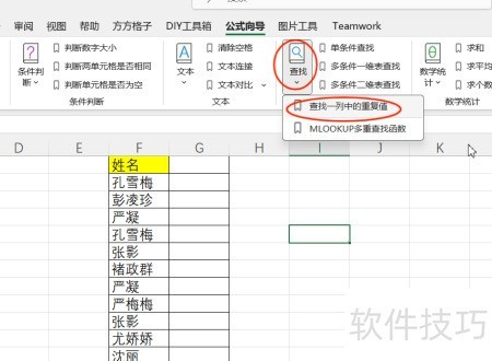 7、 通过下拉公式填充单元格,即可找出F列中的重复内容,你掌握了吗?