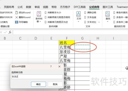 6、 选定存放公式的单元格,确认后关闭对话框。