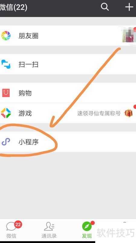 2、 打开微信,点击底部发现,再进入小程序即可。