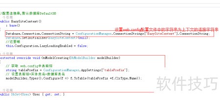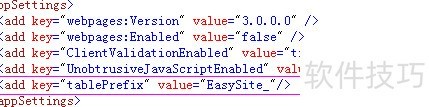 3、 在web.config中设置数据库表前缀,若已取消第1步的注释,则此步骤可省略。