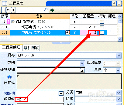 2、 生成项目后自动配置电缆头,如需调整数量,直接修改对应参数即可。