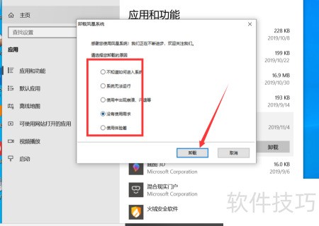 5、 点击后选择卸载原因,确认卸载即可,操作所示。