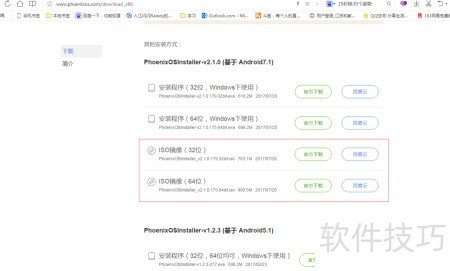 1、 前往Phoenix OS官网phoenixos.com下载ISO镜像文件。根据自身电脑系统选择版本,我的是64位系统,因此下载64位版本,大家可根据实际情况自行决定。