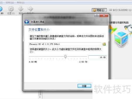 5、 新建虚拟硬盘时,持续点击下一步。到达文件位置和大小界面时,自定义存储路径,容量建议不低于4G,推荐设置为16G。确认配置后点击创建即可完成。