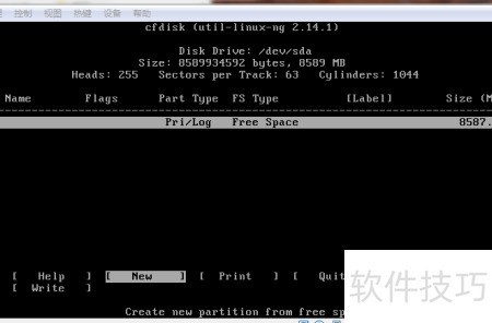 13、 在分区界面用左右箭头选中New,按回车键创建新分区。
