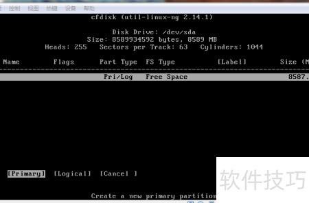 14、 选择Primary创建主分区,随后提示输入大小时直接回车,使该分区占用整个虚拟硬盘空间。