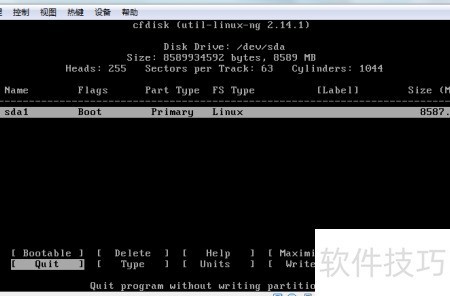 20、 用←→键选中quit,按回车退出分区工具。