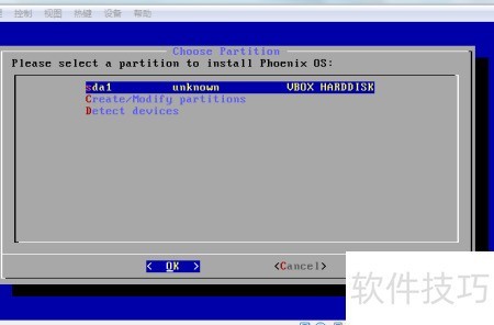21、 在弹出界面中找到新分区的硬盘sda1,选中后按回车键开始安装Phoenix OS。