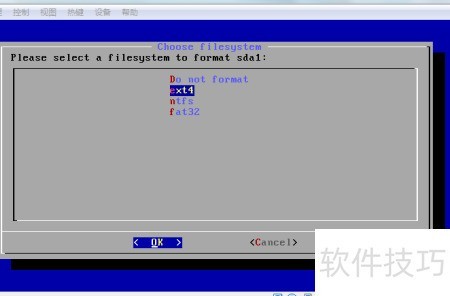 22、 请选择文件系统为ext4,然后按回车确认。