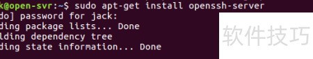 2、 发现系统中缺少SSH进程,需安装OpenSSH服务器。执行以下命令进行安装:sudo apt-get install open...