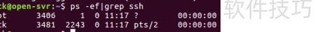3、 检查SSH服务是否运行,可执行命令:sudo ps -ef | grep ssh。