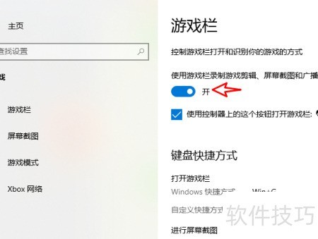 8、 开启游戏栏录制功能以捕捉游戏片段。