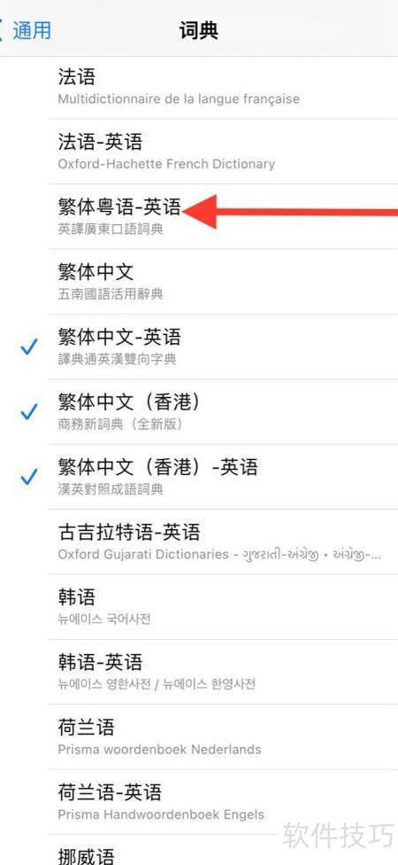 6、 下滑页面找到繁体粤语-英语,点击即可添加词典。