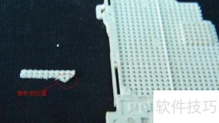 1、 从CPU插座上截取一小块,按图示方式处理,需预留一个独立的引脚孔,避免焊接时受周围针脚干扰。由于断针位置不固定,常出现在针脚中间区域,因此设计时应考虑实际维修的便利性,确保烙铁能顺利接触焊点。