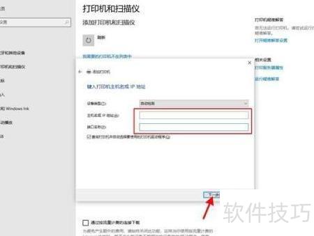 4、 第四步,输入打印机的IP地址和端口名称,勾选自动选择打印机驱动程序选项,然后点击下一步完成操作。