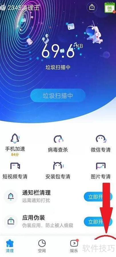 1、 打开手机桌面,找到并点击2345清理王图标。