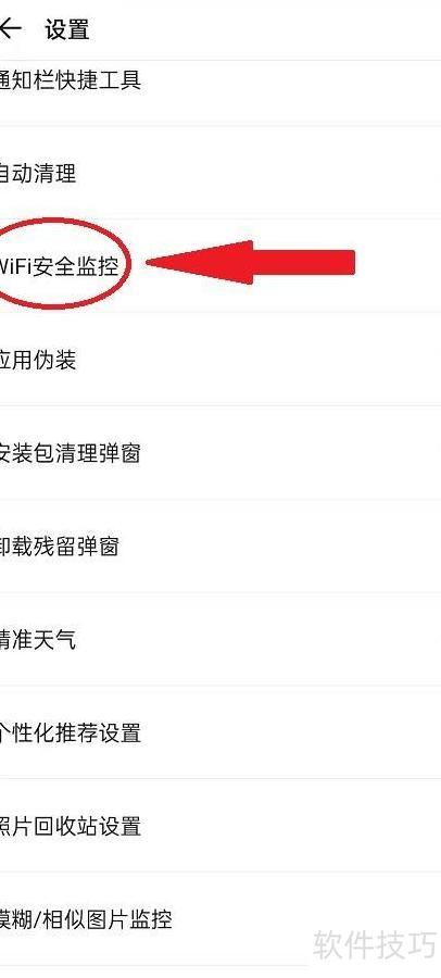 4、 进入设置,点击WiFi安全监控,操作所示。
