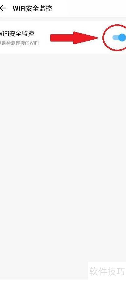 5、 跳转页面后,开启WiFi安全监控右侧开关即可完成设置。