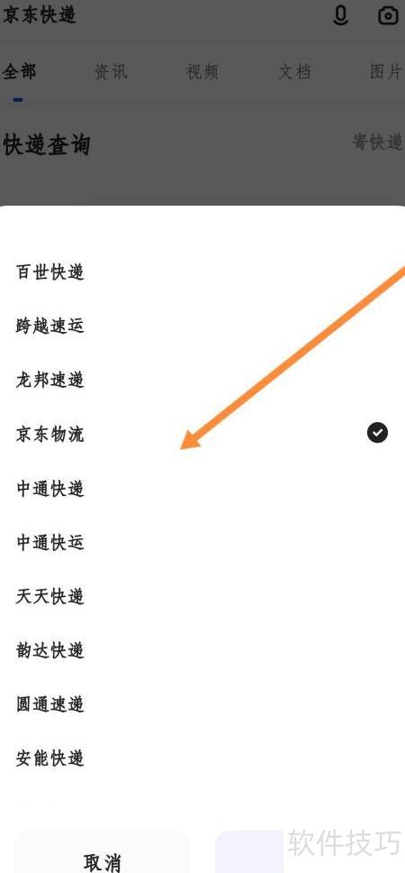 2、 进入查询页面,选择快递公司为京东进行筛选。